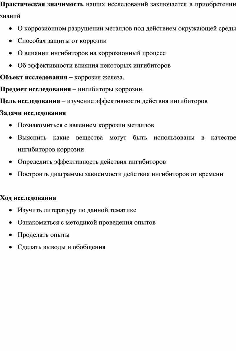 · Выяснить какие вещества могут быть использованы в качестве ингибиторов коррозии