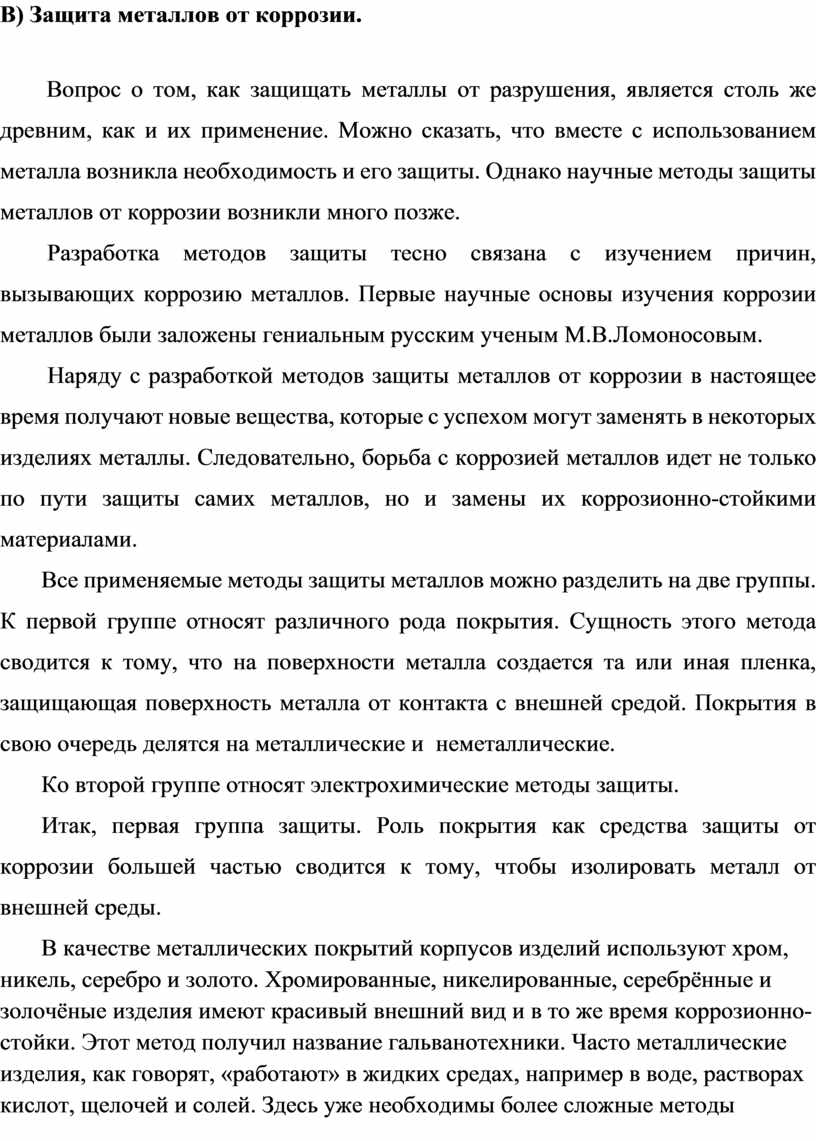 Разработка методов защиты тесно связана с изучением причин, вызывающих коррозию металлов. Первые научные основы изучения коррозии металлов были заложены гениальным русским ученым М.В.Ломоносовым.