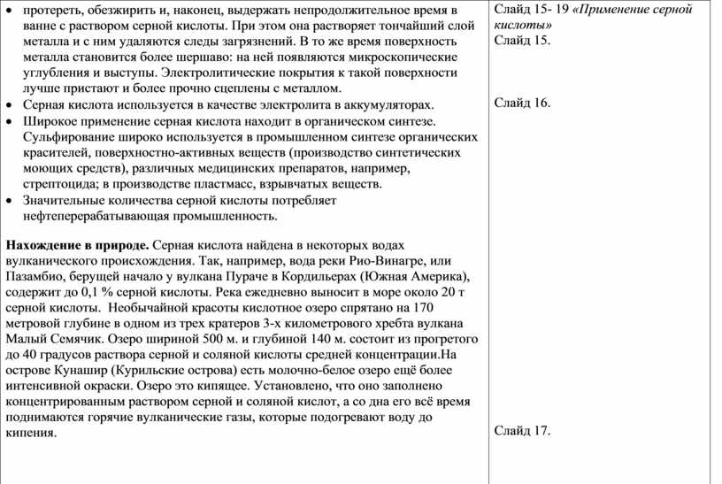 Слайд 15- 19 «Применение серной кислоты» Слайд 15.