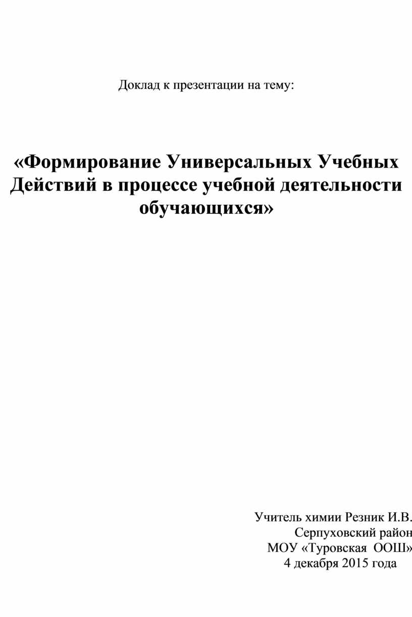 «Формирование Универсальных Учебных Действий в процессе учебной деятельности обучающихся»