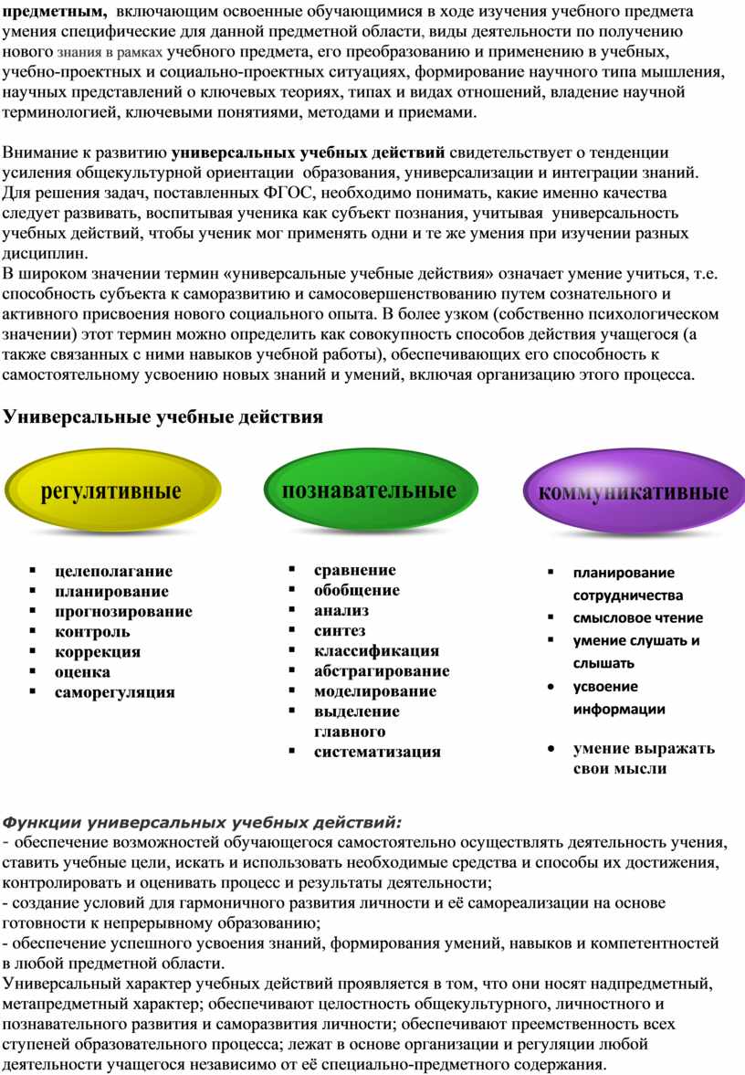 Внимание к развитию универсальных учебных действий свидетельствует о тенденции усиления общекультурной ориентации образования, универсализации и интеграции знаний. Для решения задач, поставленных ФГОС, необходимо понимать, какие именно качества следует развивать, воспитывая ученика как субъект познания, учитывая универсальность учебных действий, чтобы ученик мог применять одни и те же умения при изучении разных дисциплин.