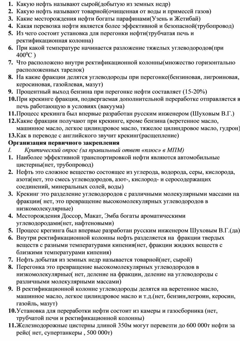 1. Назовите физические свойства нефти(маслянистая вязкая жидкость темного цвета со своеобразным запахом, не растворяется в воде, горючая, плотность 0,73-0,98г/мл, растворяется в органических растворителях)