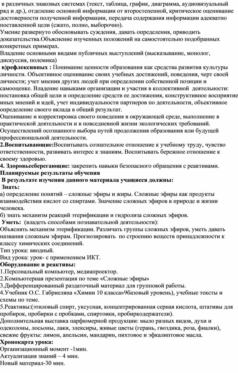 1.Образовательные: Помочь сформировать знания обучающихся о строении сложных эфиров.