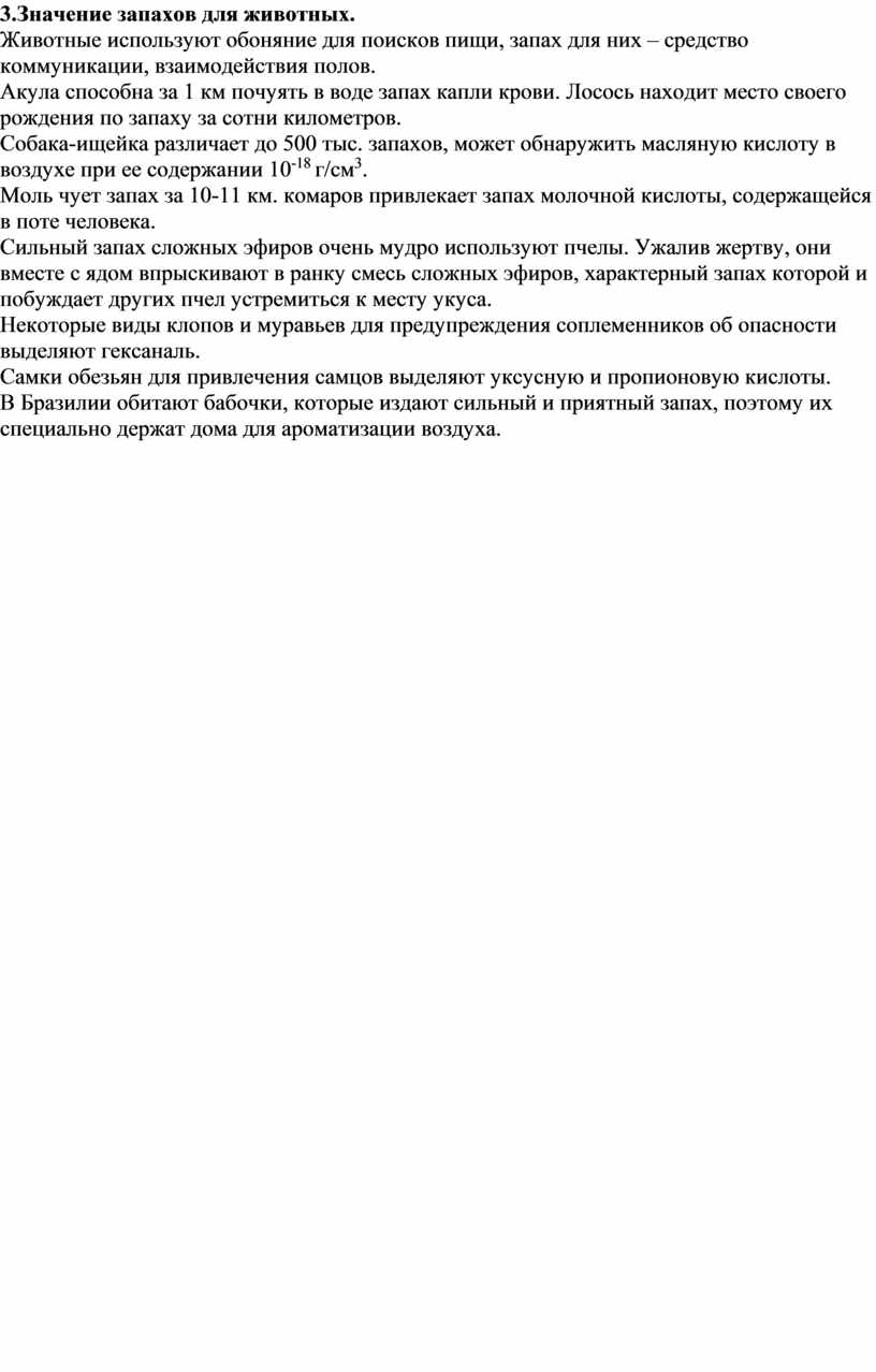 Животные используют обоняние для поисков пищи, запах для них – средство коммуникации, взаимодействия полов.