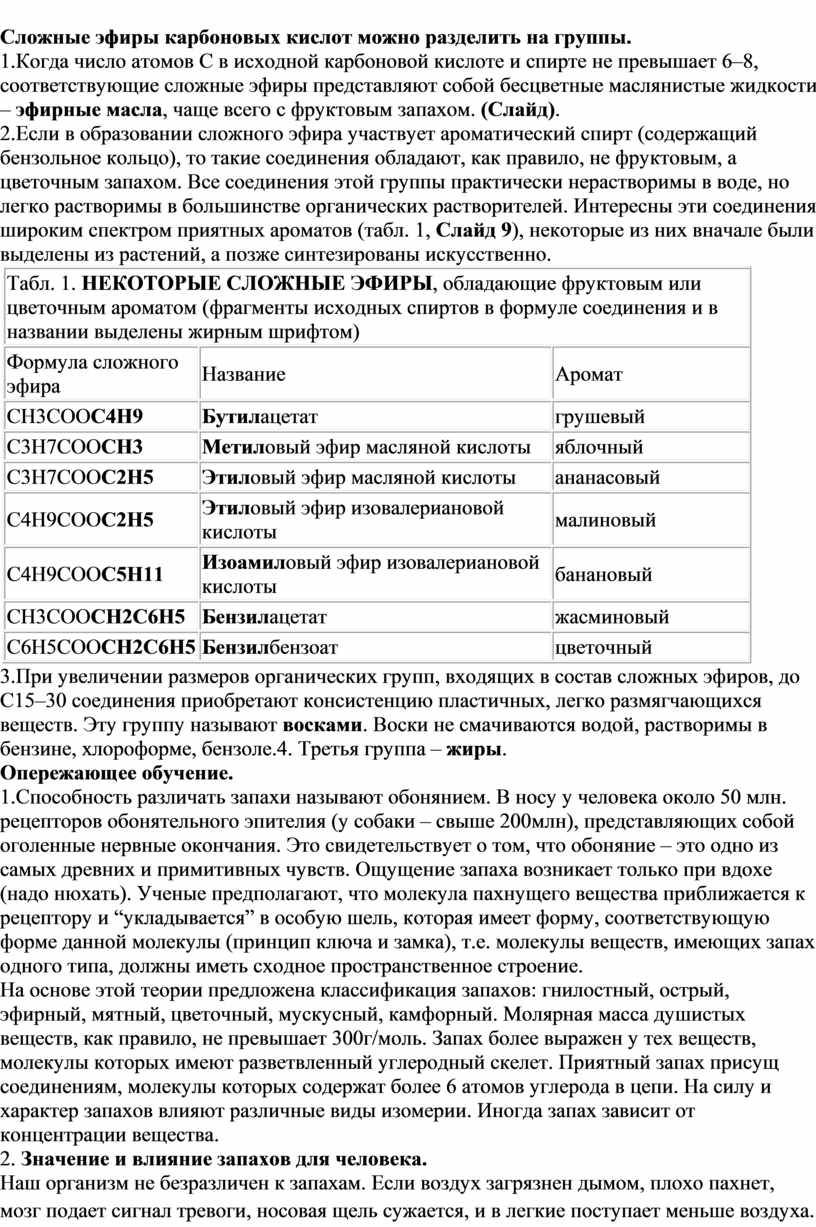 -знать понятия «Сложные эфиры и жиры. Сложные эфиры как продукты взаимодействия кислот со спиртами. Значение сложных эфиров в природе и жизни человека.