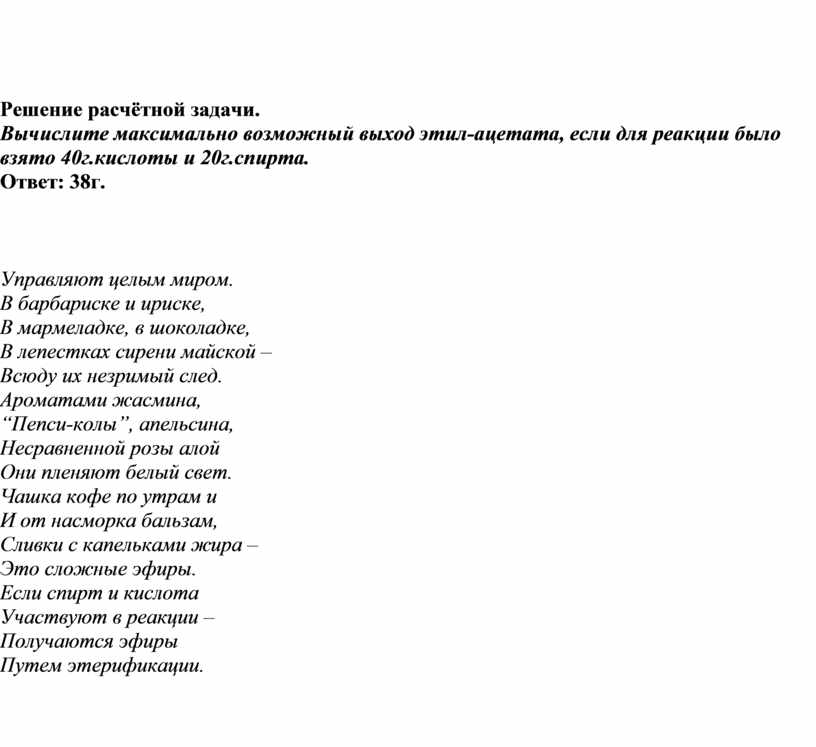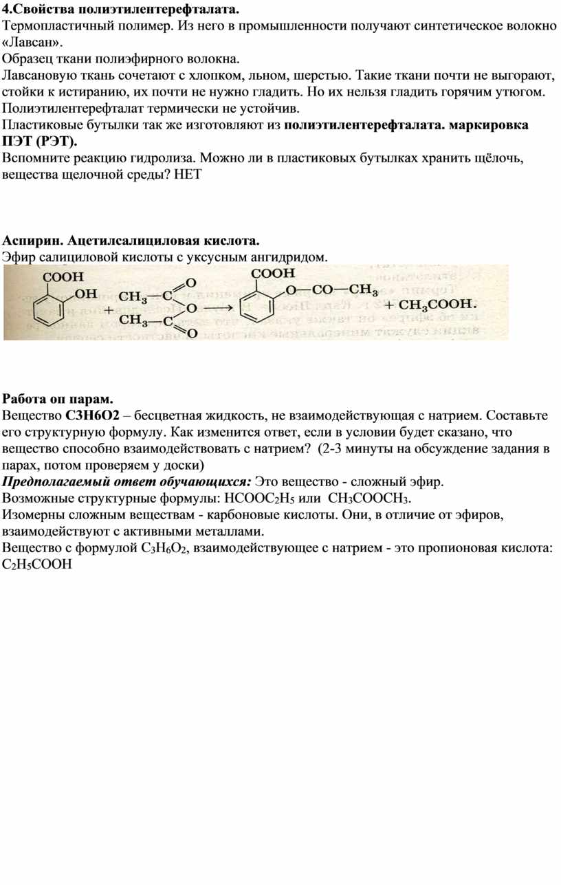«полиэфиры на примере лавсана», «гидролиз сложных эфиров как важнейшее химическое свойство», сложные эфиры в природе и промышленности»