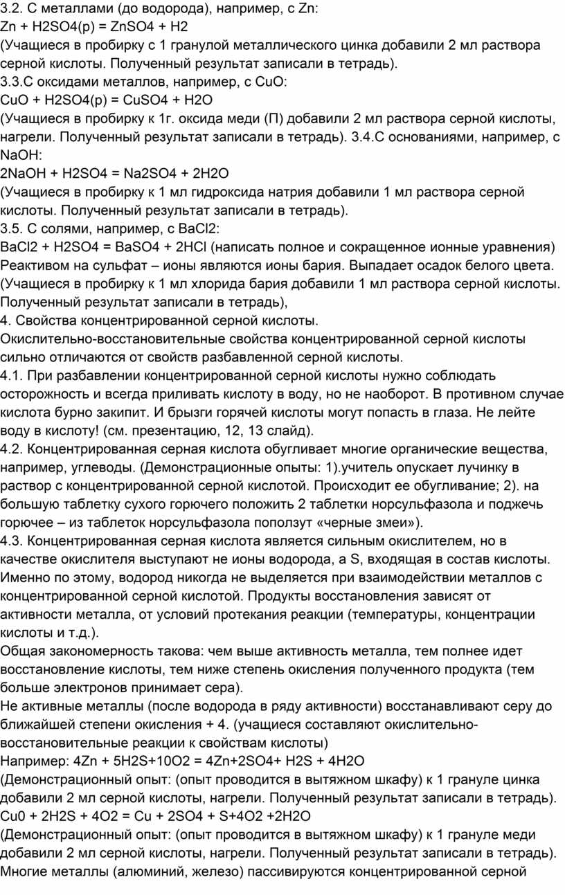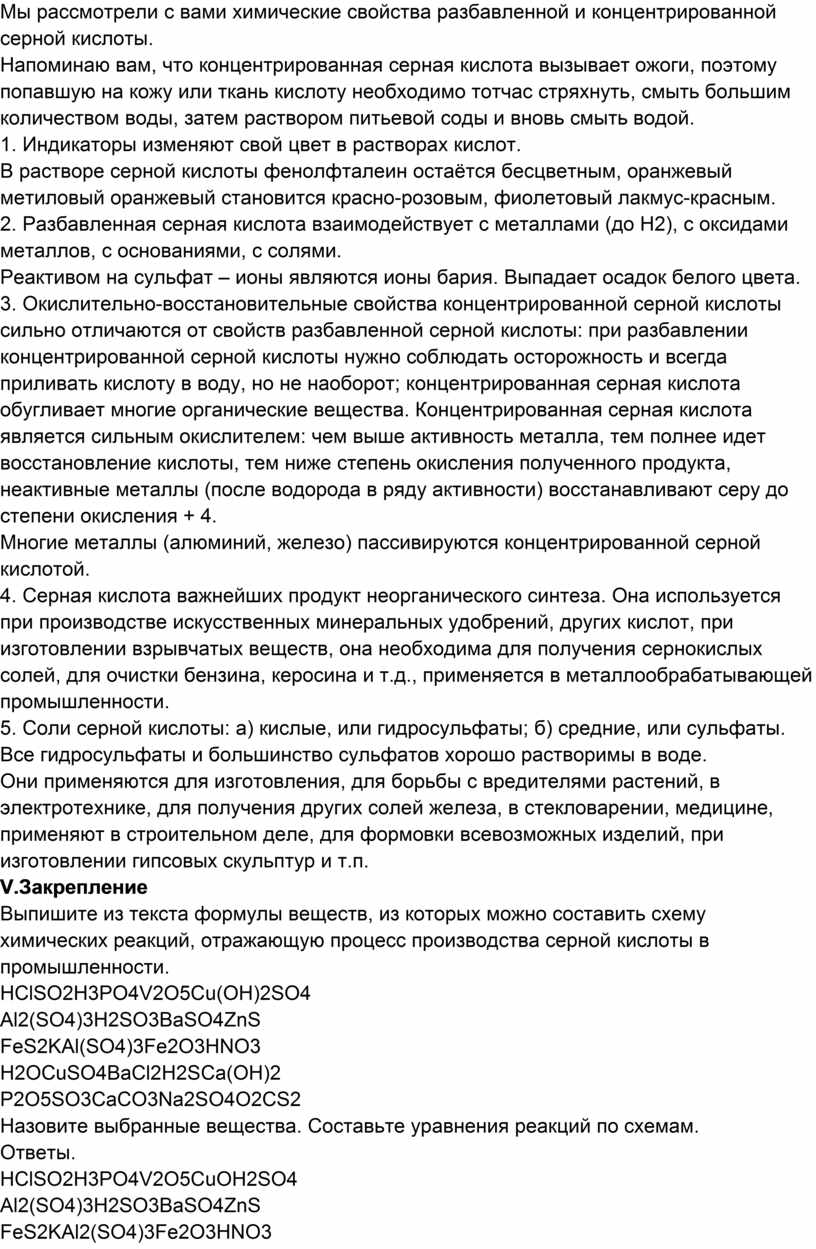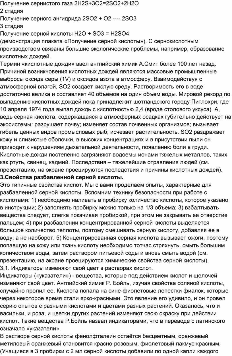 кислоте (см. презентацию, на экране проецируется процесс получения серной