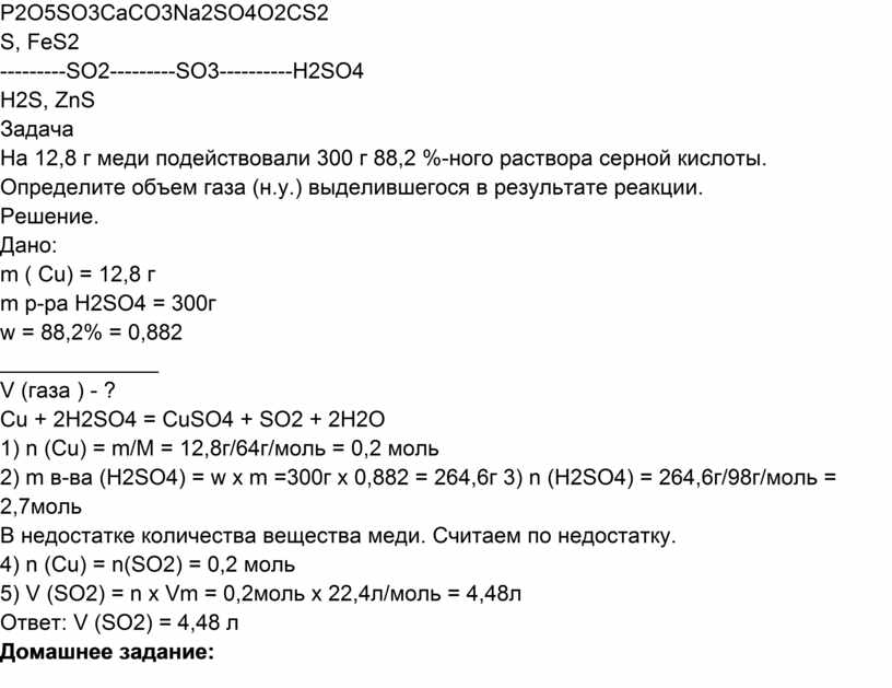 5) V (SO2) = n x Vm = 0,2моль x 22,4л/моль =