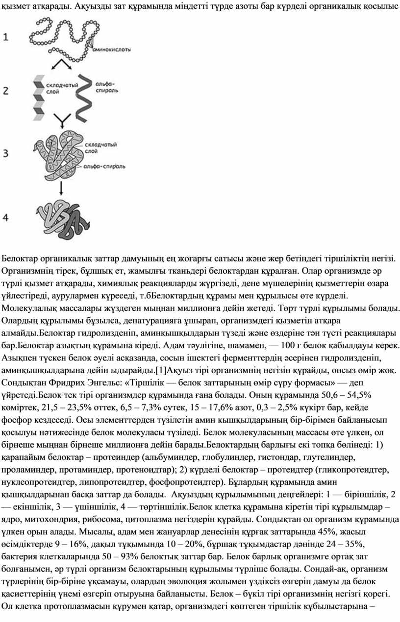 түзілістер. Ақуыз ағзалар тіршілігінде олардын