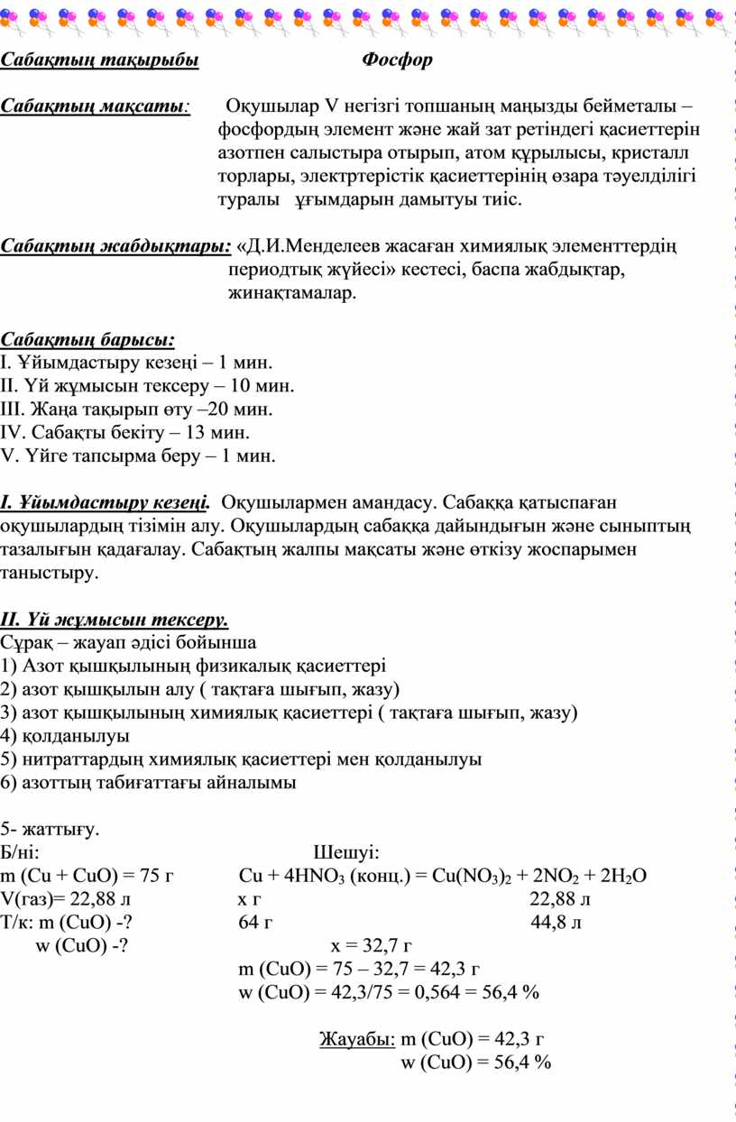 Сабақтың мақсаты: Оқушылар V негізгі топшаның маңызды бейметалы –