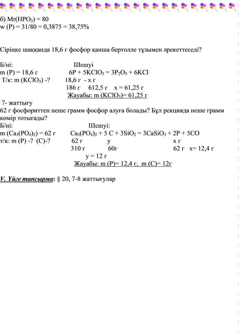 а) Фосфор (ІІІ) оксидіндегі; ә) фосфор (V) оксидіндегі б) метафосфор қышқылындағы фосфордың фосфордың массалық үлесін есептеңдер.