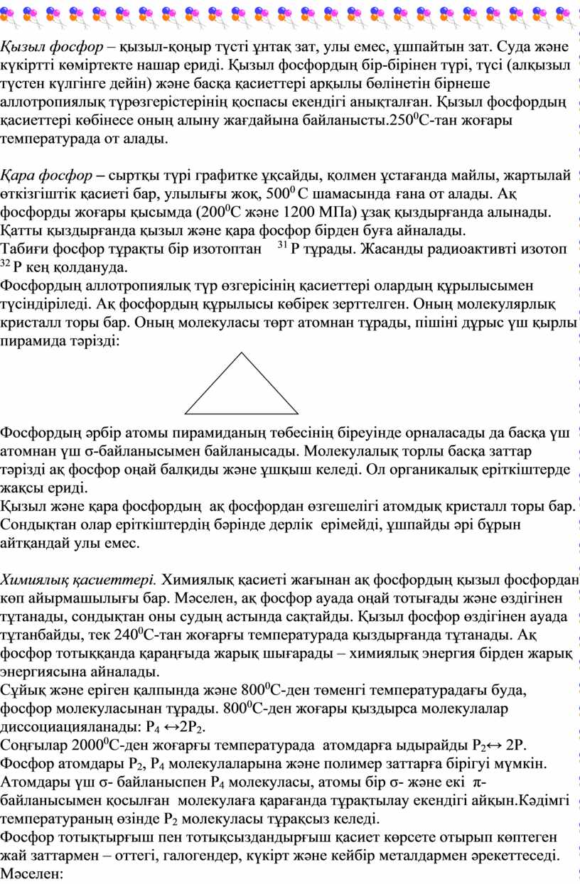 фосфордың элемент және жай зат ретіндегі қасиеттерін