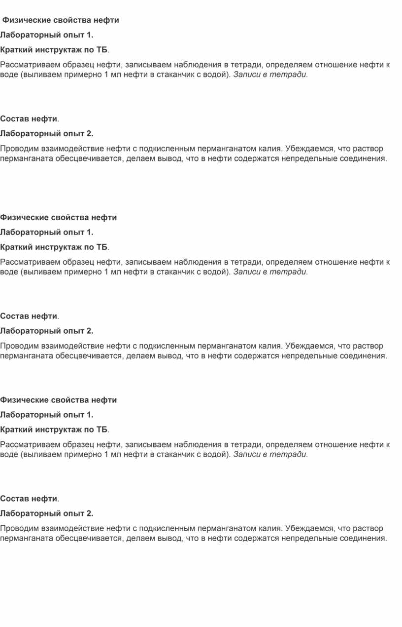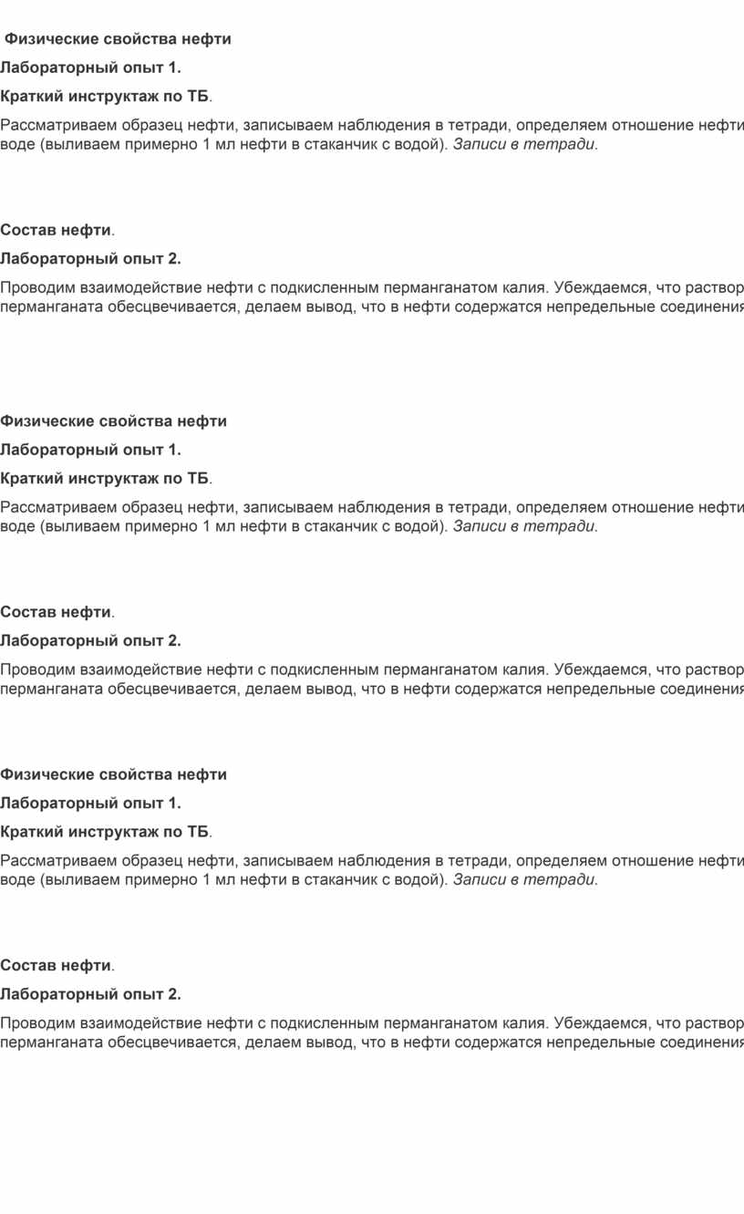 Инструктивная карточка к уроку: «Нефть состав , свойства нефти и продукты её переработки.»