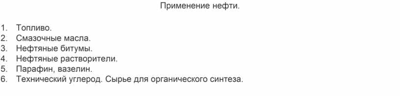 Применение нефти.