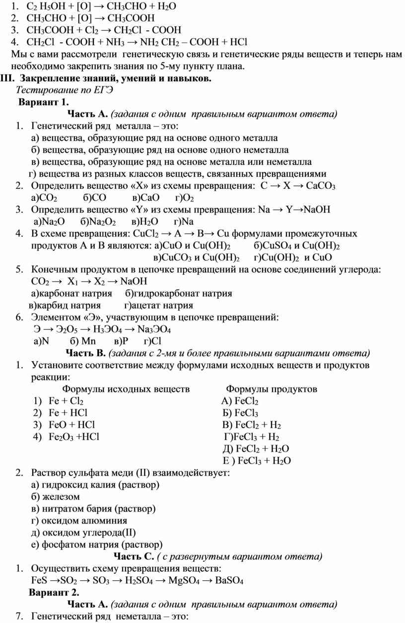 веществ, дать понятие о «генетическом ряде веществ» и «генетической связи»,