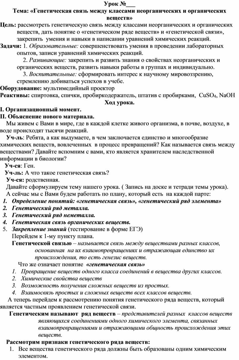 Цель: рассмотреть генетическую связь между классами неорганических и органических