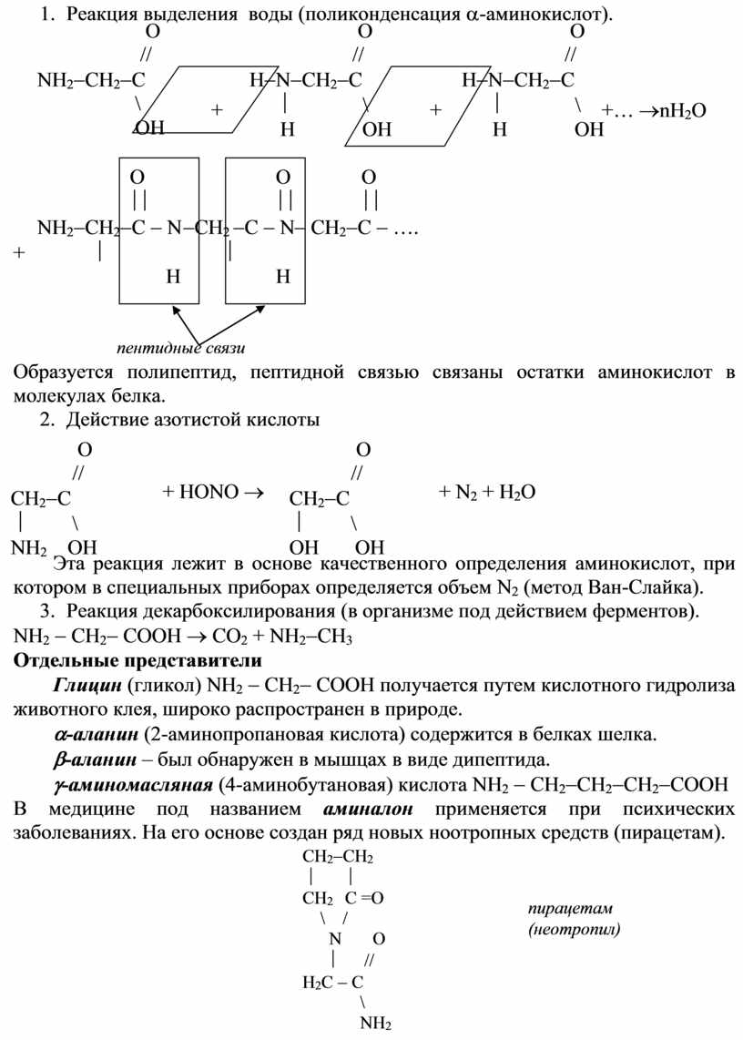Реакция выделения воды (поликонденсация a-аминокислот).