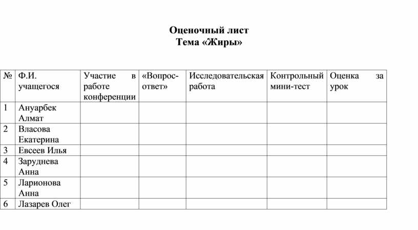 Оценочный лист
