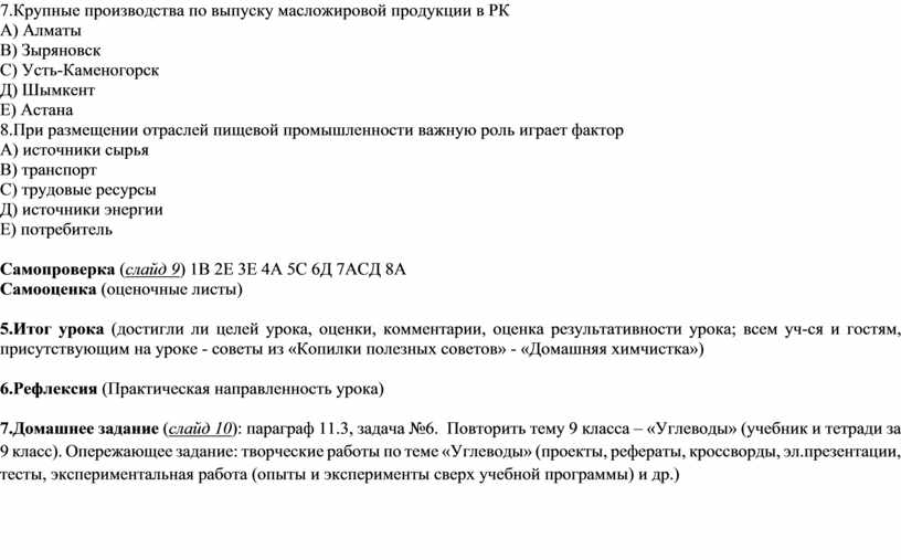 - приводить примеры размещения производств по выпуску масложировой продукции на территории РК, ВКО, района;