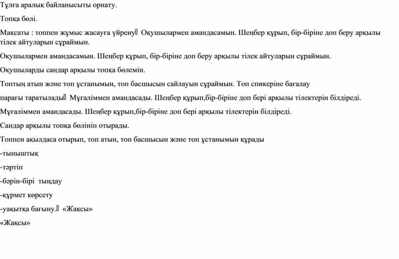 Психалогиялық ахуал Ұйымдастыру кезеңі. Тұлға аралық байланысыты орнату. Топқа бөлі. Мақсаты : топпен жұмыс жасауға үйрену |