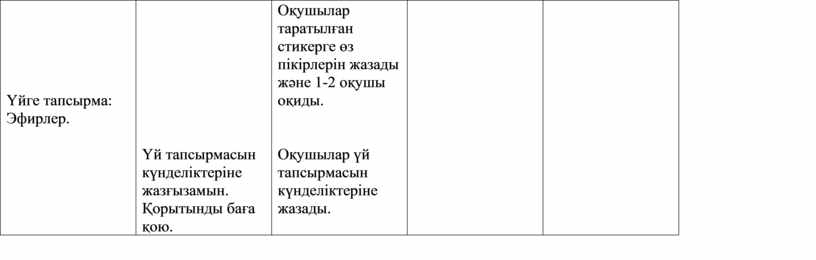 Мақсаты:Эфирлер жайлы сыни тұрғыдан қасиеттерін саралау.