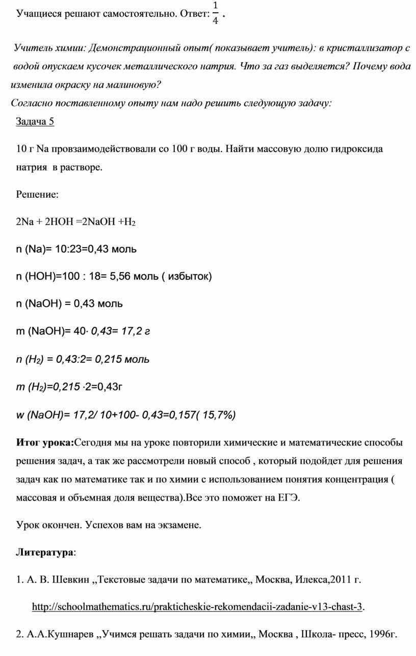 1. Рассмотреть в сравнении химический и математический способ решения задач с