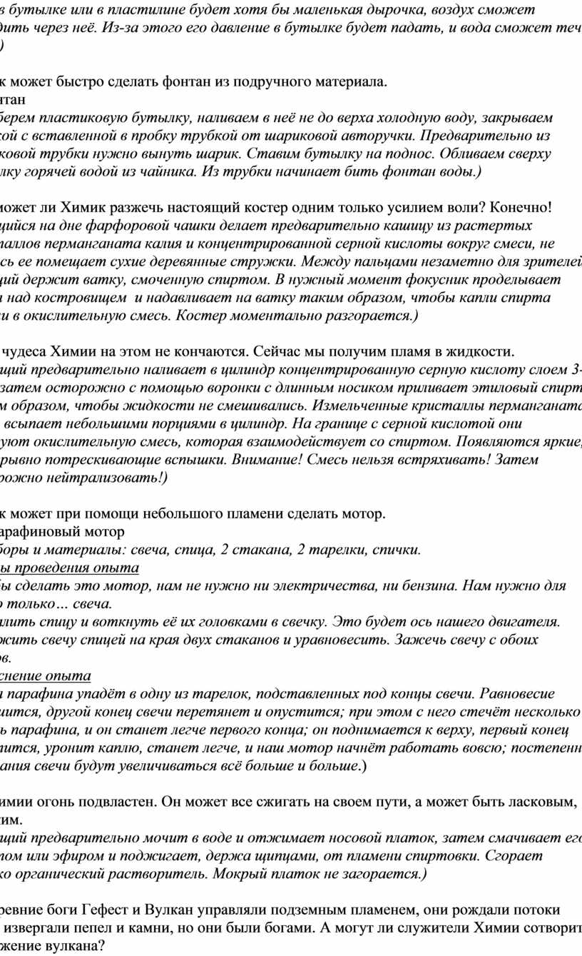 12. Древние боги Гефест и Вулкан управляли подземным пламенем, они рождали потоки лавы, извергали пепел и камни, но они были богами. А могут ли служители Химии сотворить извержение вулкана?