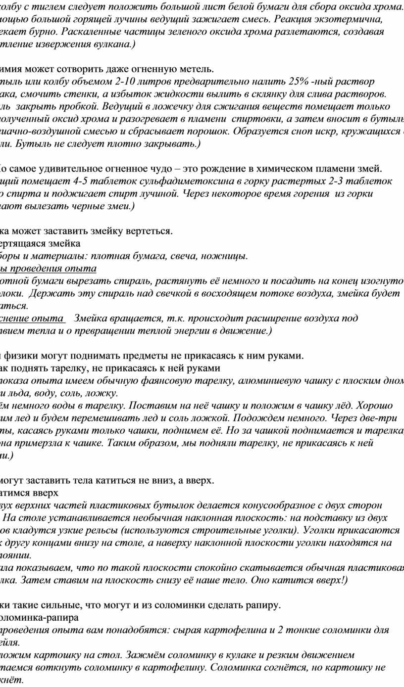 Цели: прививать интерес к предметам химия и физика; развивать практические навыки учащихся, сообразительность, логическое мышление, устную речь, любознательность и повышать их общую культуру; воспитывать у учащихся веру в свои силы.