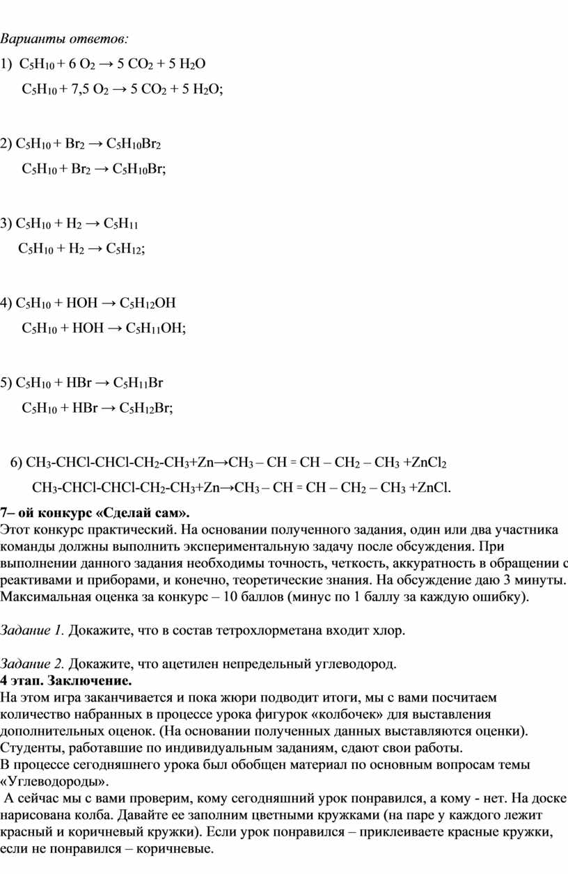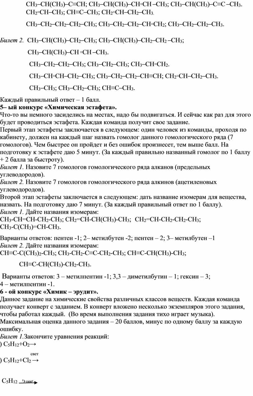 - по строению, изомерии, номенклатуре, химическим свойствам углеводородов (алканов, алкенов, алкинов).