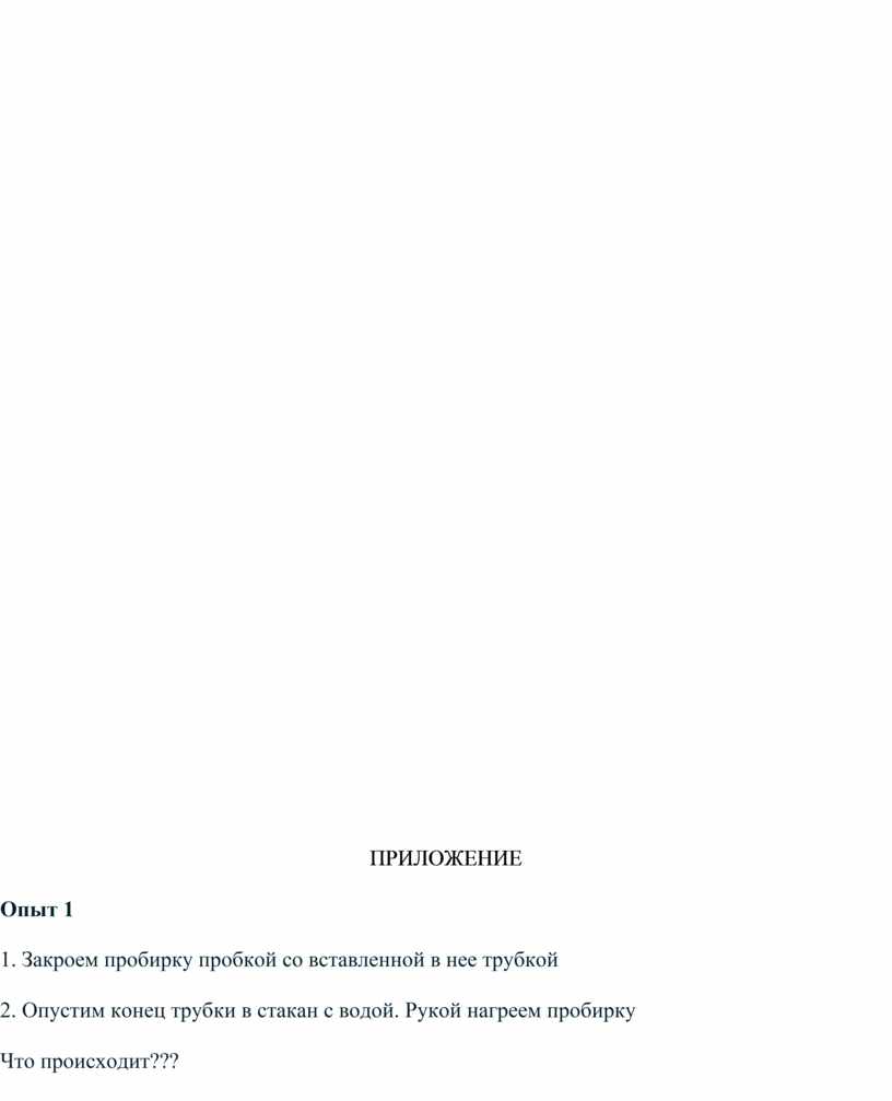 Вывод. Объем воздуха в ней увеличивается, и часть воздуха из пробирки выходит в стакан с водой (выделяются пузырьки воздуха). При охлаждении пробирки объем воздуха уменьшается, и вода входит в пробирку. Изменения объема воздуха – физическое явление.