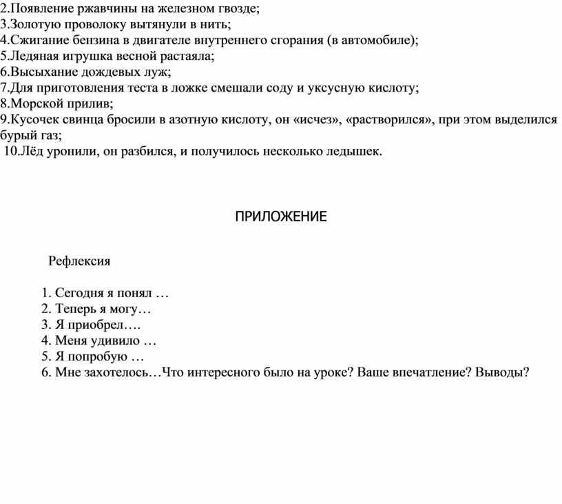 Лабораторный опыт № 3 «Изучение признаков химических явлений» «Физические явления (кипение воды, плавление парафиновой свечи, сахара). Химические явления (образование осадка, выделение газа, появление запаха, изменение окраски вещества, выделение или поглощение теплоты)» (приложение)