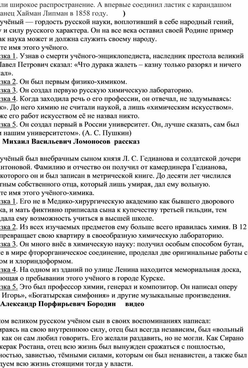 Ответ: Дмитрий Иванович Менделеев. Рассказ