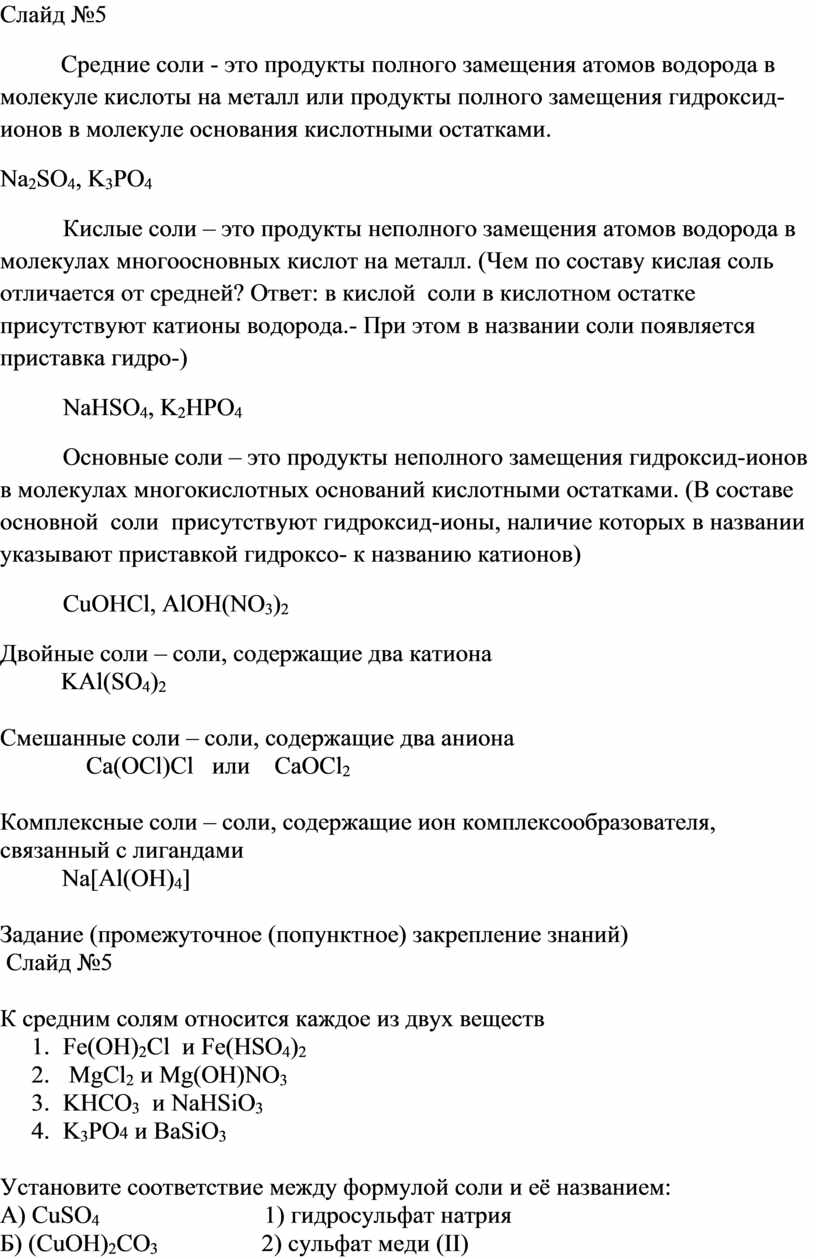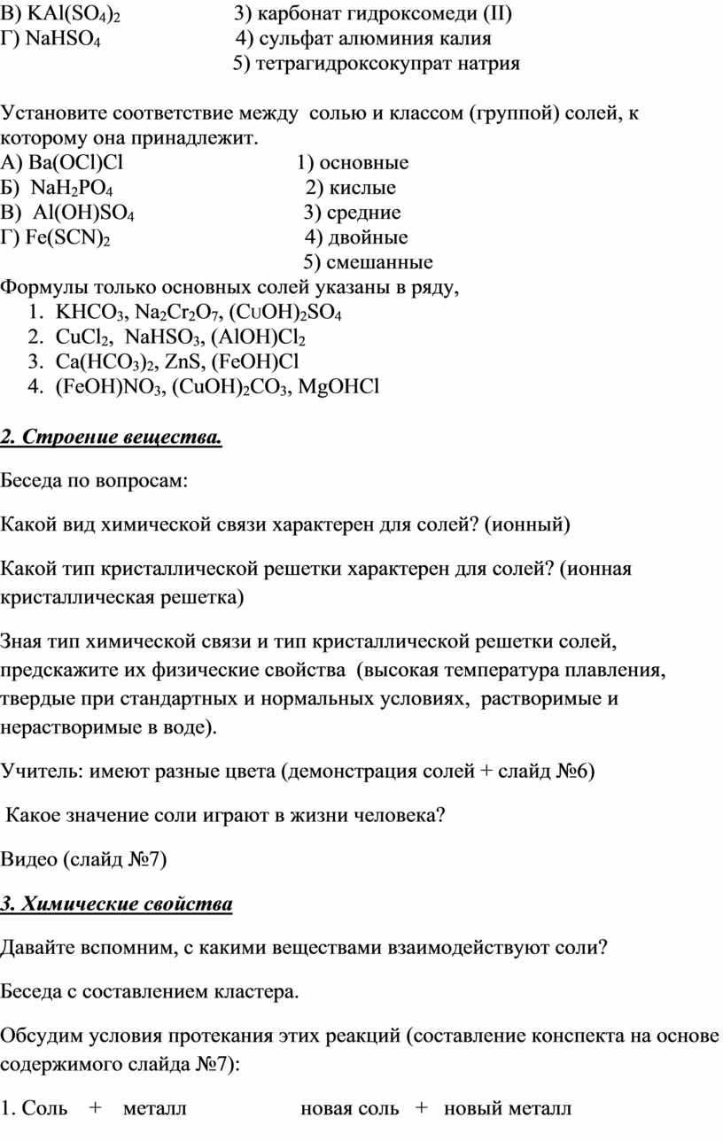 5. Химические свойства солей.