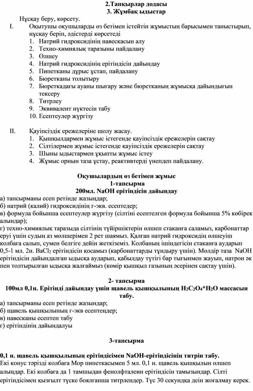 3. Жұмыс ерітінділерін дайындау (NaOH, H2SO4)