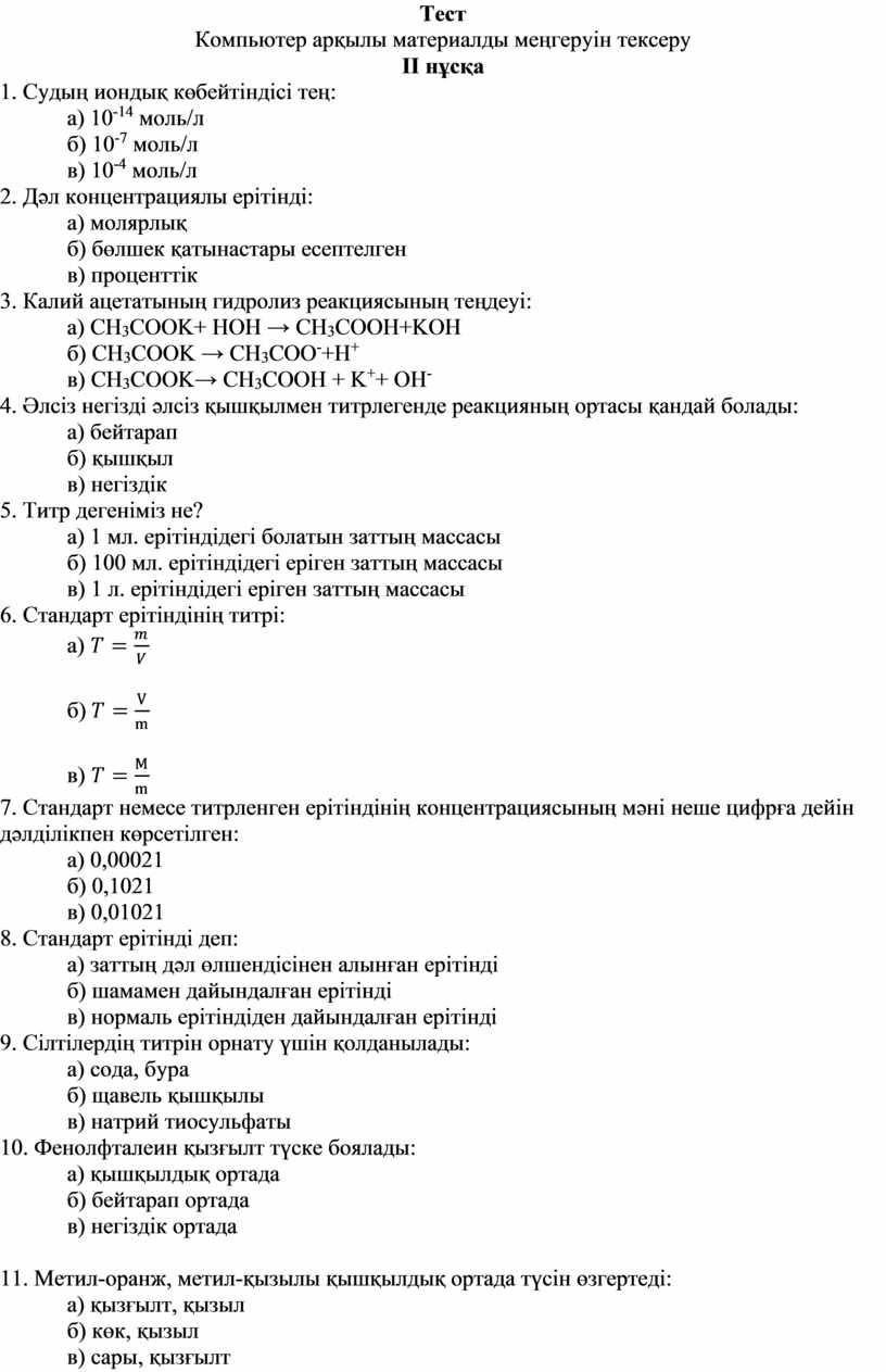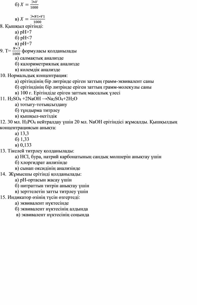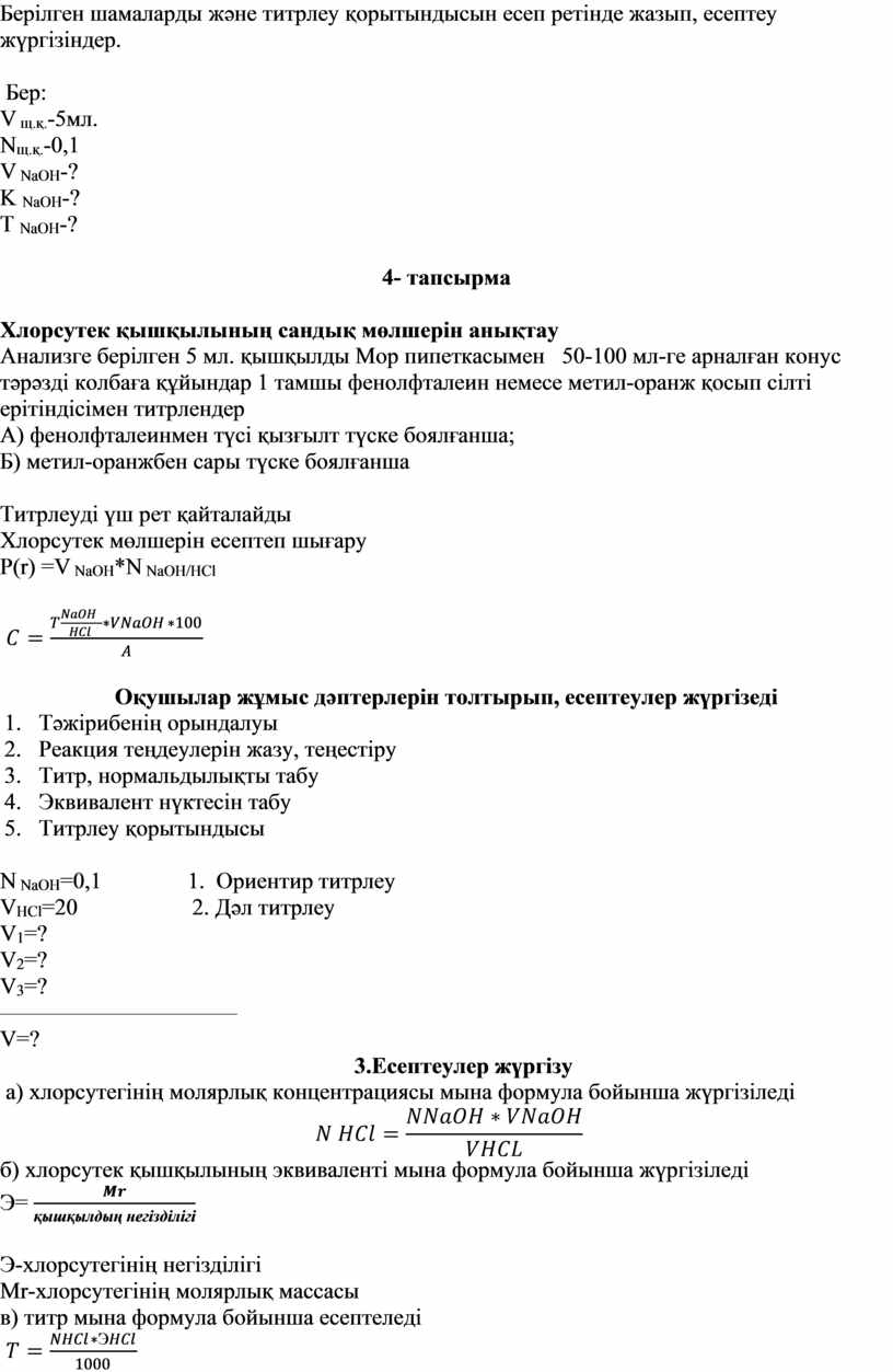 Реактивтер: HCl 0,1н; NaOH фенолфталеин