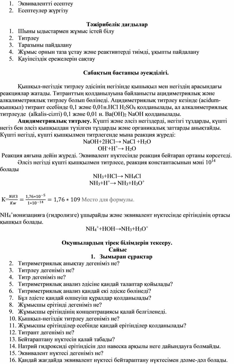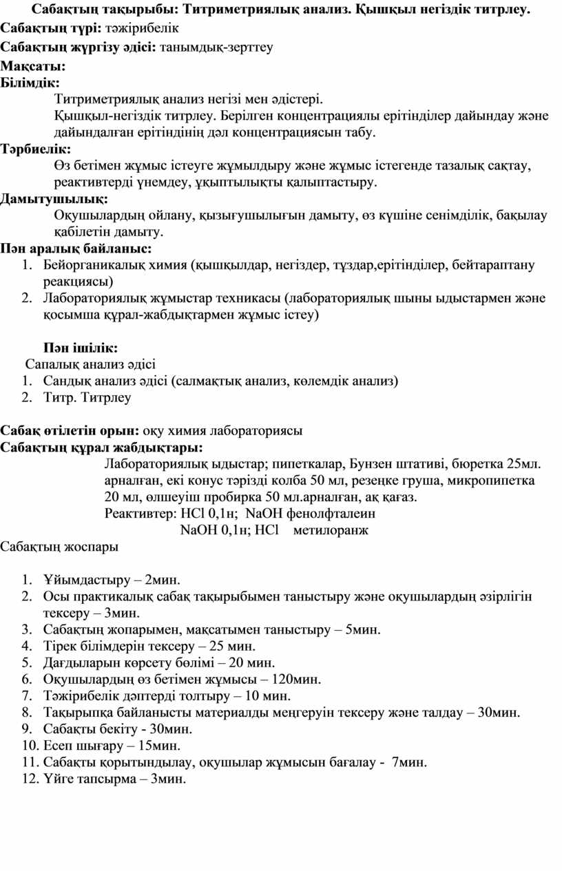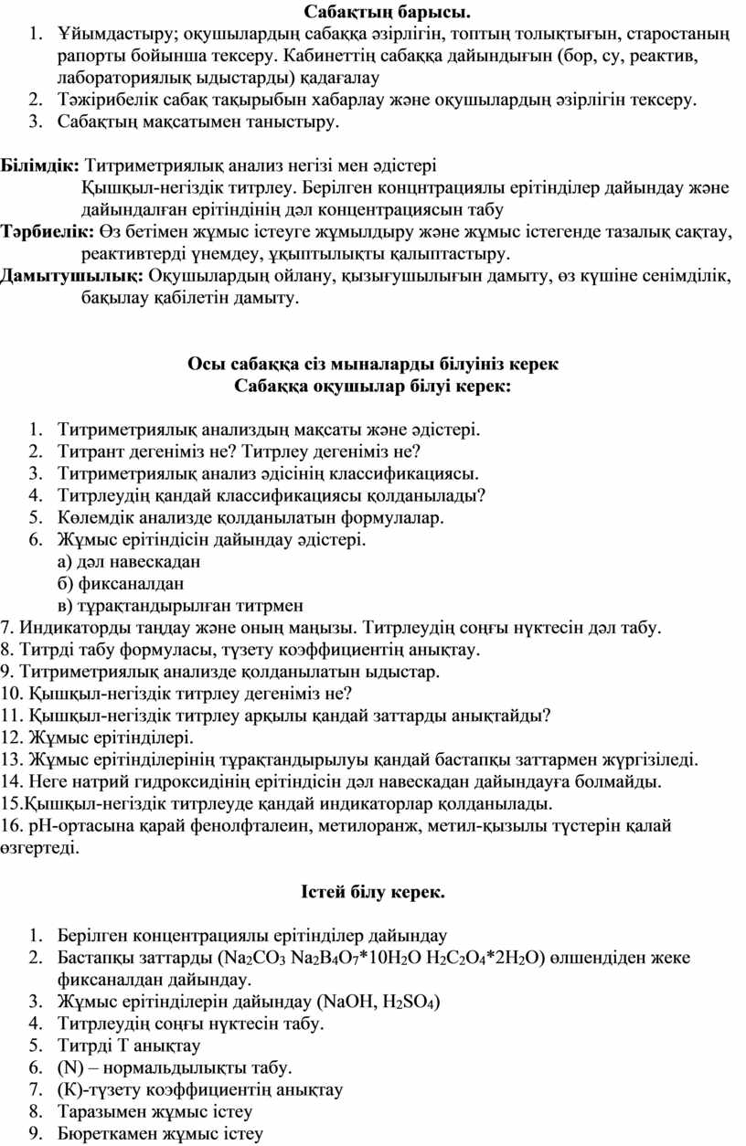 Сабақтың тақырыбы: Титриметриялық анализ. Қышқыл негіздік титрлеу.