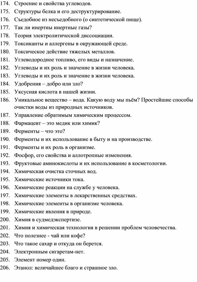 ПРИМЕРНЫЕ ТЕМЫ ПРОЕКТНЫХ РАБОТ ПО ХИМИИ
