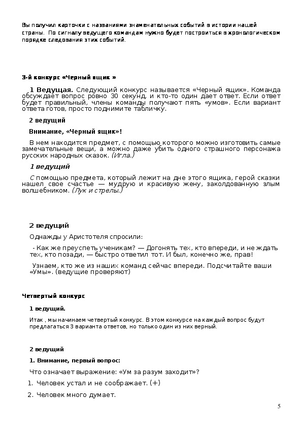 1 Ведущая. Следующий конкурс называется «Черный ящик». Команда