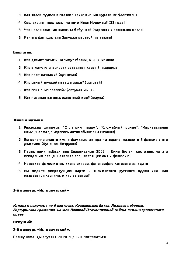 Итак , мы начинаем четвертый конкурс. В этом конкурсе на каждый вопрос будут
