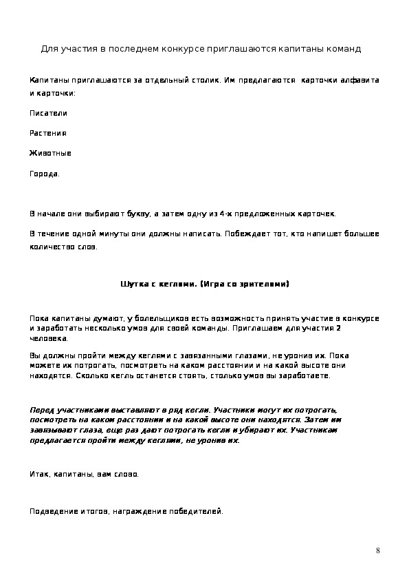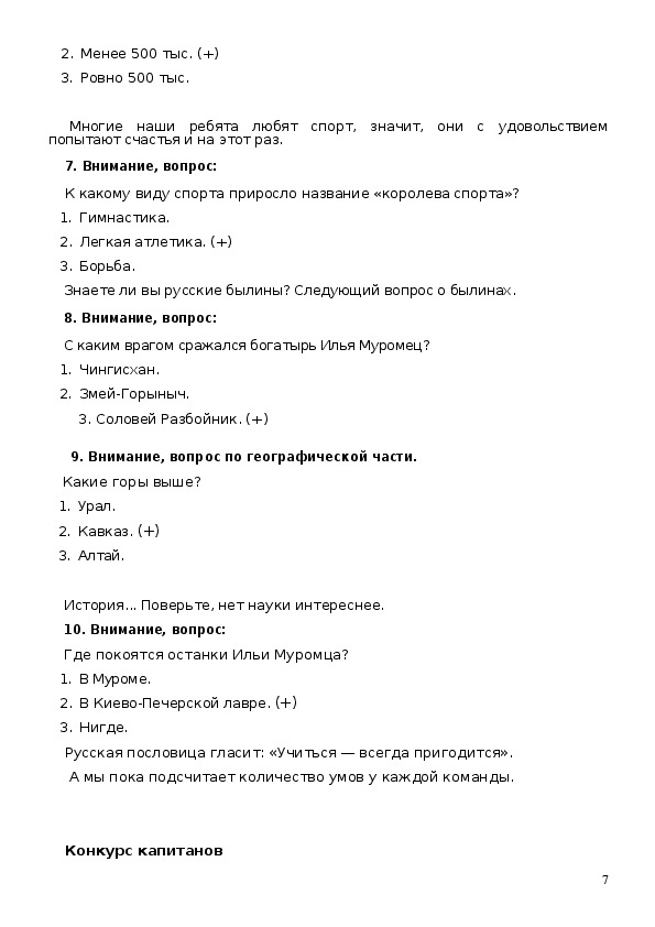 7Для участия в последнем конкурсе приглашаются капитаны команд