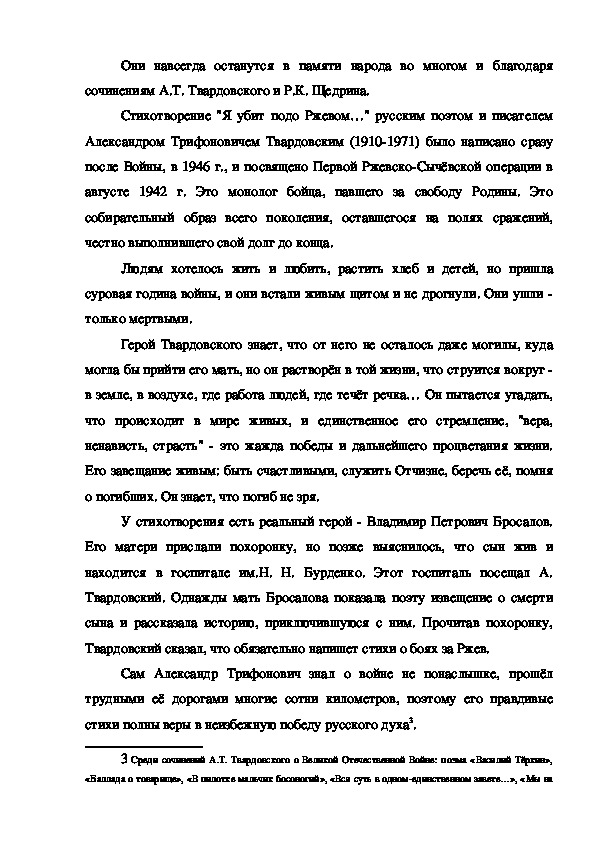 Твардовского "Я убит подо Ржевом" // Журнал "Литература". № 23, 2001 г.)