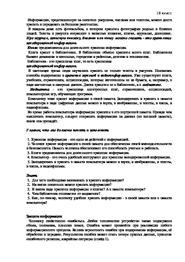 тема урока:Хранение информации. Защита информации. Методы защиты.