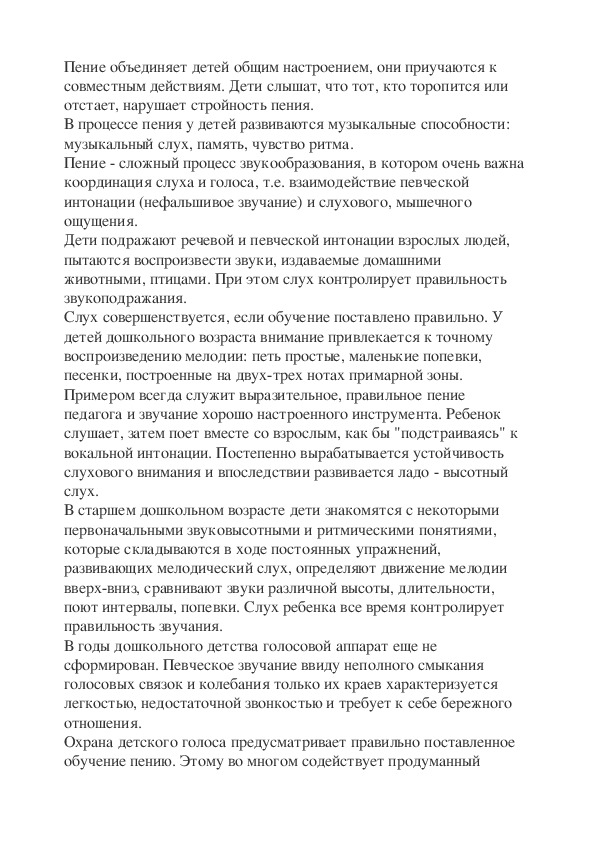 отдельных звуков и слогов.Пение объединяет детей общим настроением, они приучаются к