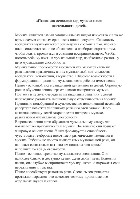 наиболее близко и доступно детям. Дети любят петь. Исполняя