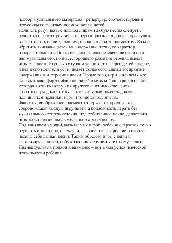 обучение пению. Этому во многом содействует продуманныйподбор музыкального материала репертуар, соответствующий