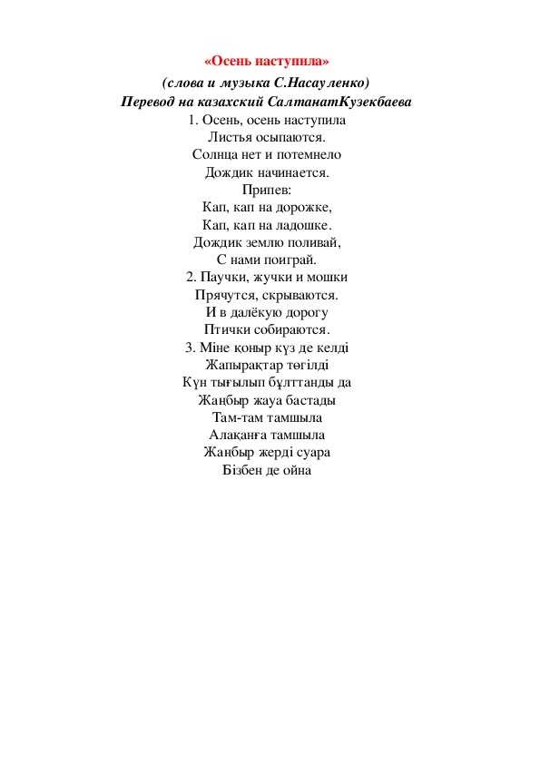 Если выйдете гулятьНе забудьте зонтик взять.«Осень наступила»