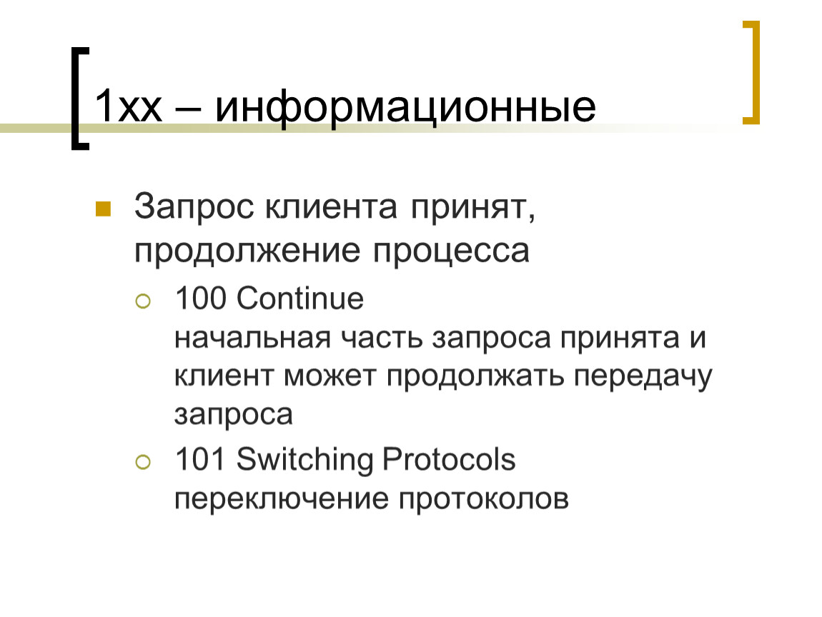 Коды в диапазонах 1xx, 2xx и 3xx большинство браузеров обрабатывают без извещения пользователя
