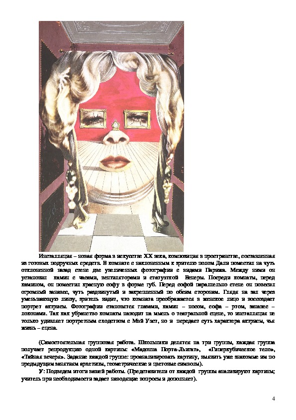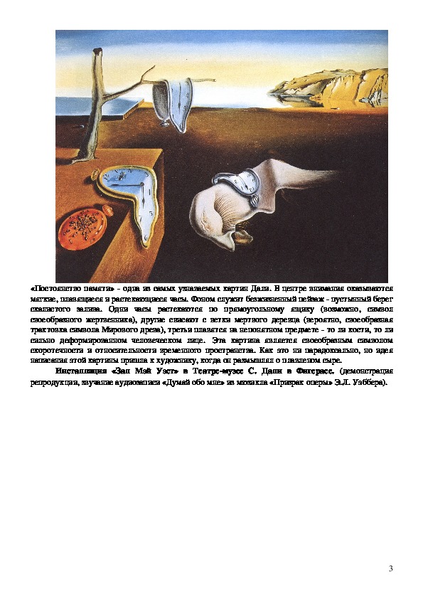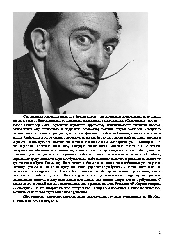 Цель урока: дать учащимся представление о творчестве С. Дали в контексте художественной