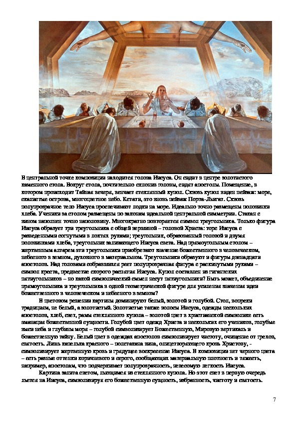половинками хлеба, треугольник заливающего Иисуса света. Над прямоугольным столом –