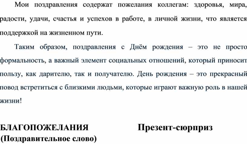Поздравления с Днём рождения служат для укрепления отношений, создания позитивного настроения и выражения символического внимания в педагогическом коллективе.